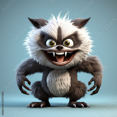 © 92ashrafsoomro, Fototapeta premium 3d cute cartoon raccoon monster realistic 3d monster