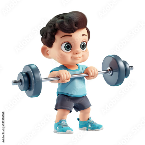 © Mediapro, Fototapeta premium 3D Cute Gym Boy Lifting Weights on Transparent Background