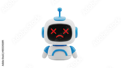 Obraz premium 3D Cute robot with dead screen face expression on transparent background