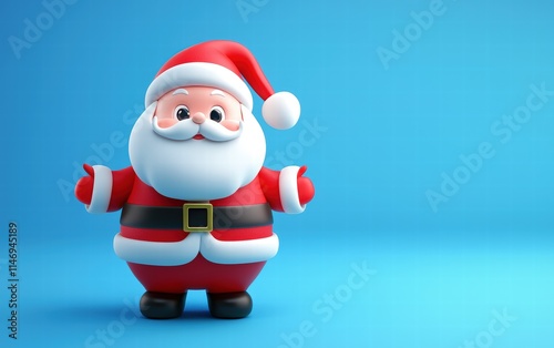 © Sergey Fedchenko, Obraz premium 3D cute Santa on bright blue background