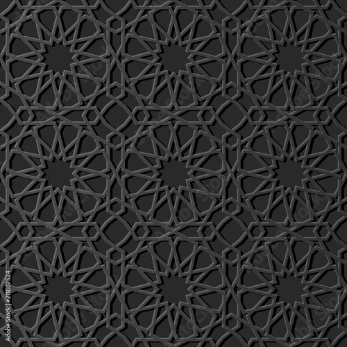 Fototapeta premium 3D dark paper art Islamic geometry cross pattern seamless background