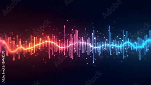 Fototapeta premium 3D data, technology, Colorful soundwave-like visualization with glowing bars
