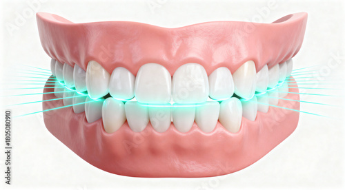 © Daria, Fototapeta premium 3D Dental Arch with Whitening Laser Light and Clean Healthy Teeth Close-Up