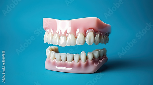 Obraz premium 3D denture mockup with light blue background. Dentistry, dental health...