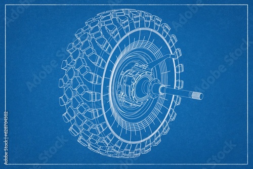 Obraz premium 3D design of a wheel hub and automotive suspension with exploded view.