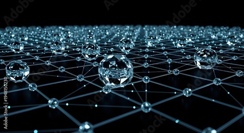 © Code SKy, Obraz premium 3d digital network sphere with glowing nodes and connections over cityscape at night
