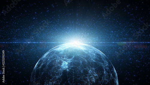 © robsonphoto, Obraz premium 3d Digital sphere with technology dots illustration.