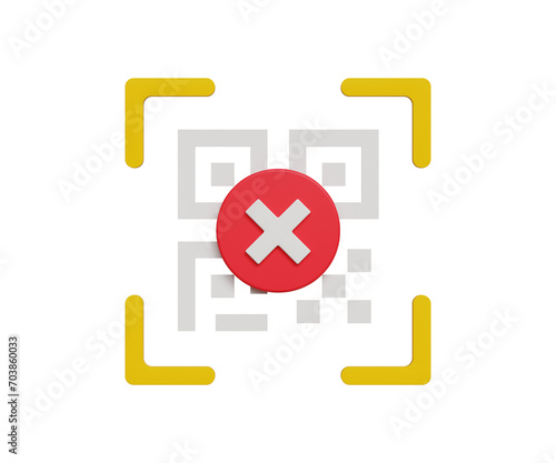 Obraz premium 3D digital transaction failure concept. Payment reject, pay money declined, online payment. 3D QR code scanning with incorrect mark. 3d illustration