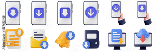 Obraz premium 3d download data file document information online internet down arrow icon set bundle illuatration