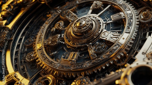 Fototapeta premium 3D effect of an intricate mechanical clock with moving gears and detailed...