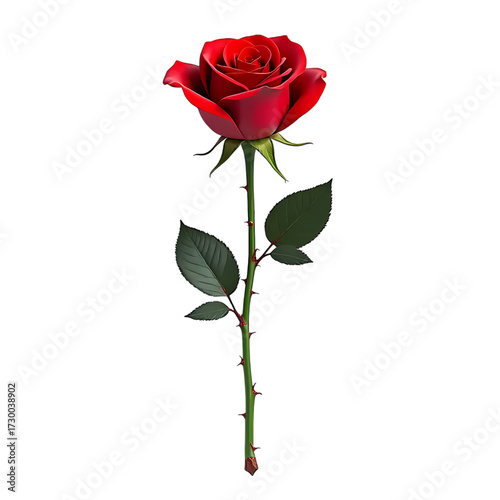 Obraz premium 3d Elegant red rose with stem and thorns nature isolated on transparent...