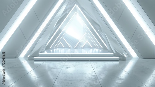 Obraz premium 3D Elegant white futuristic light and reflection triangle wall background