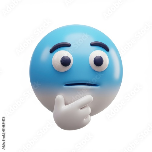 © PP Creative, Fototapeta premium 3D emoji thinking face isolated on white background with a blue and white color scheme
