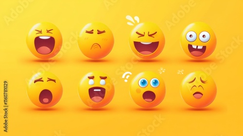 Fototapeta premium 3D Emojis Showing Human Emotions on Yellow Background