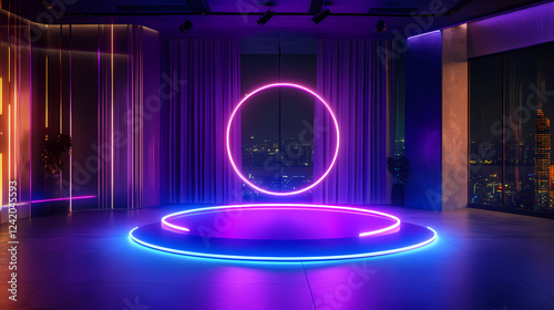 © Thiago, Obraz premium 3d empty blue podium
