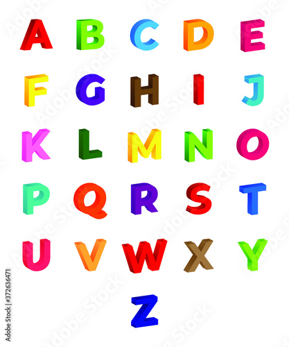 Fototapeta premium 3D English Alphabet letters set for children, english font vector...
