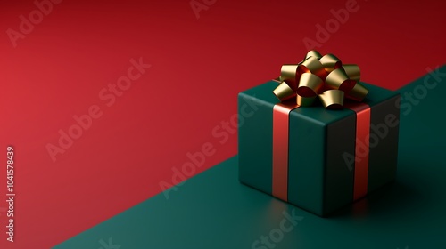 Obraz premium 3D Festive Green Gift with Gold Bow on Colorful Background