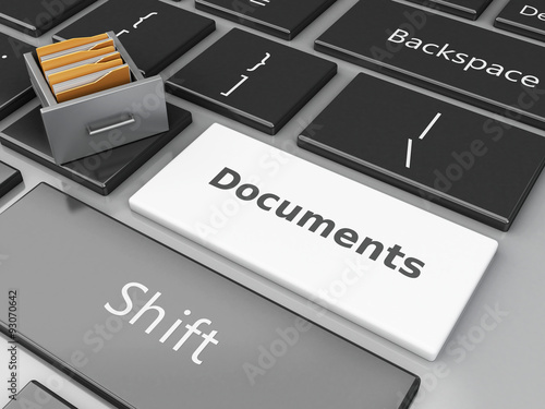 © Mego-studio, Fototapeta premium 3d File cabinet with folders on the computer keyboard