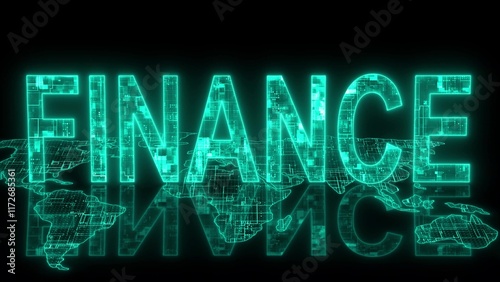 Obraz premium 3d finance text technology earth map cyan glow