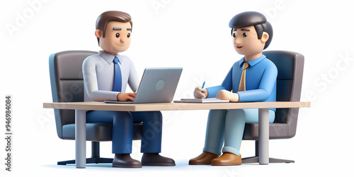 © HaJung, Obraz premium 3D Financial Officer Discussing Report with Colleague in Casual Meeting - Collaboration and teamwork shines in a relaxed office environment, candid moment captured in 3D icon isolated on white backgro