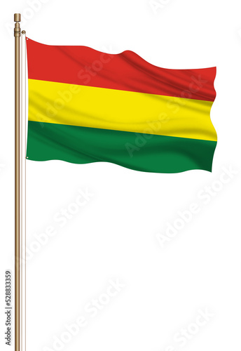 Obraz premium 3D Flag of Bolivia on a pillar blown away isolated on a white background.