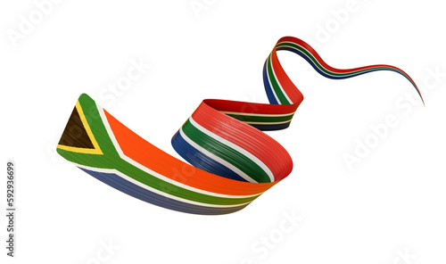© Hammad, Fototapeta premium 3d Flag Of South Africa 3d Wavy Shiny South Africa Ribbon Flag On White Background, 3d illustration