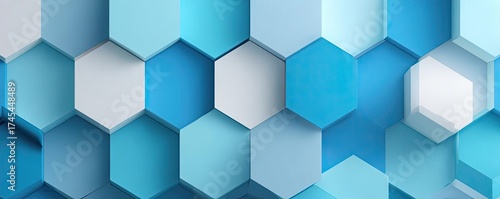 © Jiraporn, Fototapeta premium 2D flat abstract geometric cubic medical light blue concept. Dynamic hexagonal pattern in shades of blue with modern design appeal.