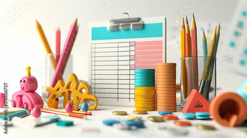 © GG Kenji, Obraz premium 3D Flat Cartoon Financial Checklist Template for Organization and Budgeting on White Background Ideal for Finance Content