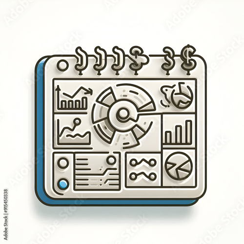 © HaJung, Naklejka premium 3D flat icon of a business dashboard symbol with copy space for project planning concept. Doodle line cartoon style.
