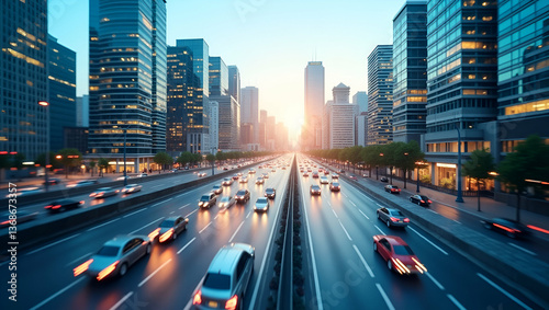 Naklejka premium 3D Flat Icon: Top View Cityscape with Smart Traffic Systems - Advanced...