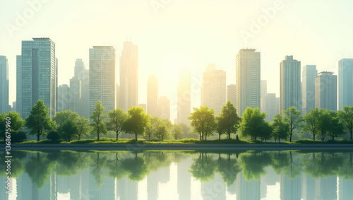 © Netaya, Naklejka premium 3D Flat Icon: Top View of a City with Community Gardens - Urban Green Spaces & Sustainable Living Concept with Copy Space on Isolated White Background