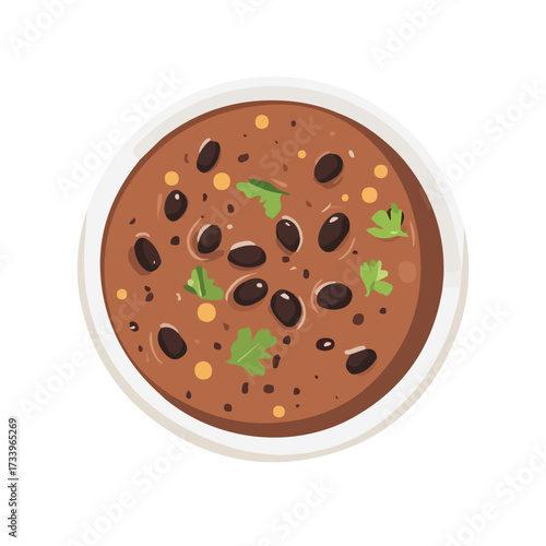 Fototapeta premium 2D flat vector illustration of a Black Bean Soup in icon style, isolated on...