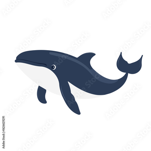 © Antoni, Obraz premium 2D flat vector illustration of a Whale in icon style, isolated on white background