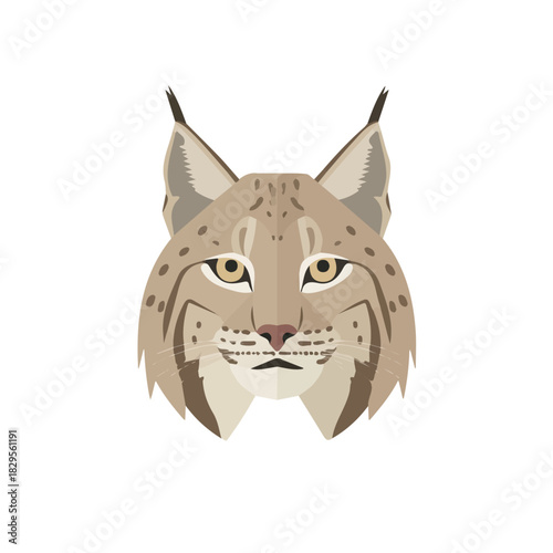 © Antoni, Obraz premium 2D flat vector illustration of Lynx, designed in a clean icon style and isolated on a white background.