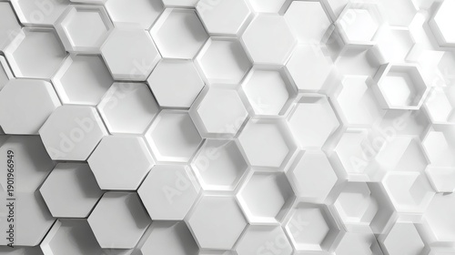 Fototapeta premium 3D futuristic honeycomb mosaic with realistic geometric mesh texture, white...