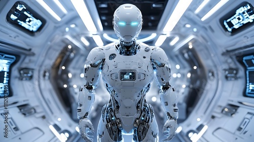 © Fidan, Fototapeta premium 3D futuristic robot with metallic textures and glowin