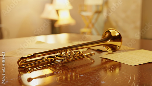 Obraz premium 3D-generated trumpet laying on a table after a performance
