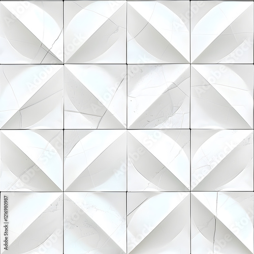 © Oksana_Latysheva, Obraz premium 3d geometric abstract white tile seamless pattern