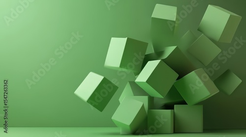 © adi, Fototapeta premium 3D Geometric form with green background
