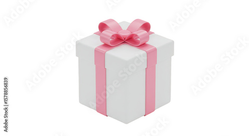 Fototapeta premium 3D Gift Box with Pink Ribbon Present Celebration Package