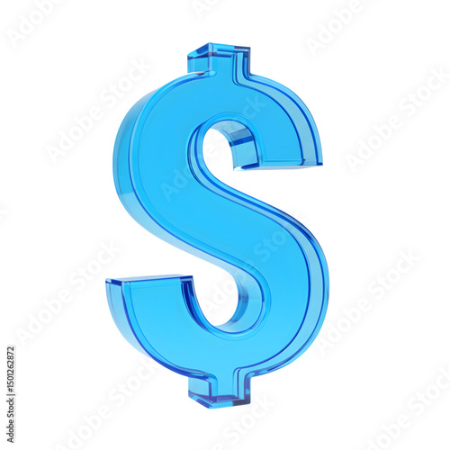 Naklejka premium 3D Glass Translucent Blue Dollar Sign