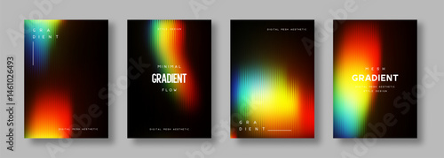 © ludmila_m, Fototapeta premium 3d glassmorphism glass with iridescent colors on the black. Abstract gradient background. Corrugated trendy texture. Vector illustration.