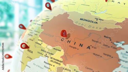 © Cinefootage Visuals, Fototapeta premium 3d globe with china location points.