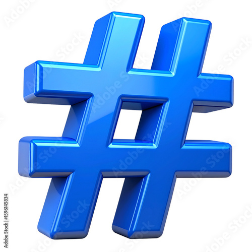 © MdMahfujAhmmed, Obraz premium 3D Glossy Blue Hashtag Symbol with Soft Shadow, Isolated PNG