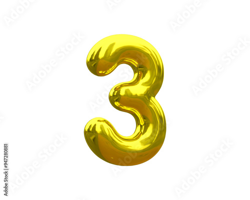 © Makara, Naklejka premium 3d glossy gold number 3