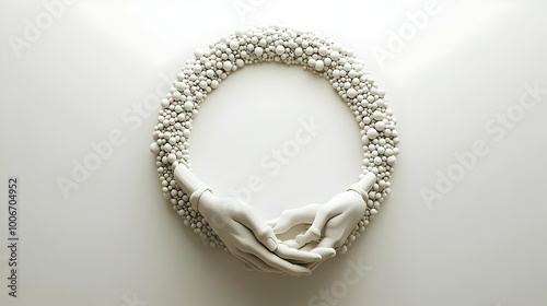 © Netaya, Fototapeta premium 3D Glossy Plain Background with Handshake Icons in Circular Pattern - Community & Partnership Concept with Generous Copy Space