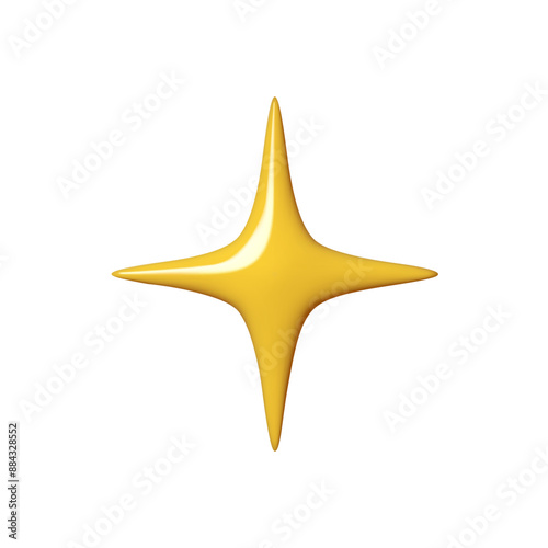 © Katerina, Fototapeta premium 3D glossy Yellow star of shape isolated on white background. Realistic 3d design cartoon style. Vector illustration