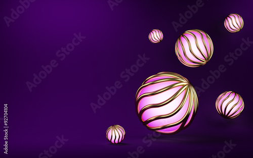© 3dddcharacter, Obraz premium 3d glowing balls on a purple background