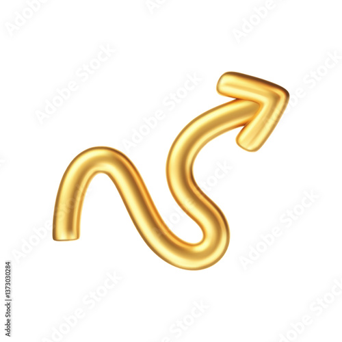 © janevasileva, Naklejka premium 3D gold doodle arrow in Y2K style, isolated on a white background. Render of 3D golden liquid curve and swirl arrow, rotating up, down, and right with a metal shine effect. 3D vector Y2K figure