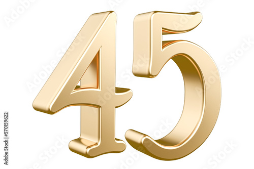 © Chetra168, Obraz premium 3d gold modern number 45 with Generative AI